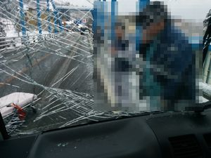 その道すがら、道路が凍結していたせいなのか対向車線を走っていた車がコチラの車線に飛び出し、