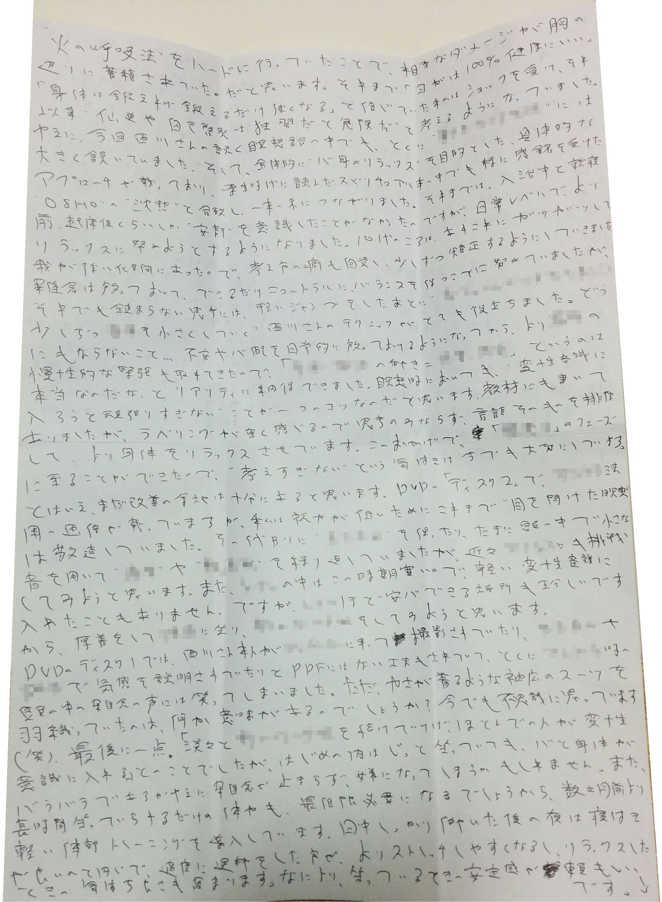 〜こういう風な呼吸で、〜こういう感じで、これをやるとこういう感覚が発生して・・・・
