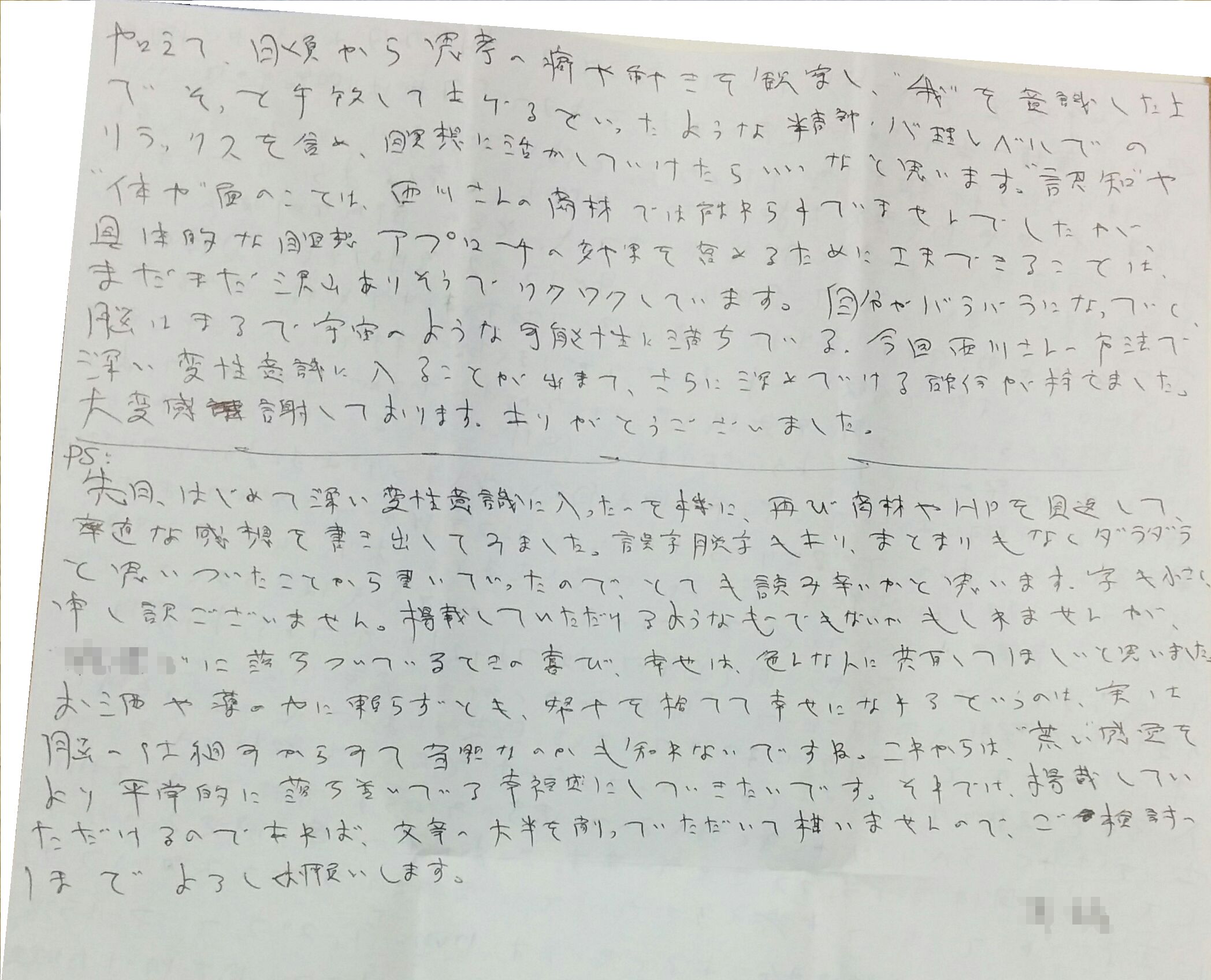 商材のネタバレにならないよう抽象的な説明しかできませんが、変性意識状態、瞑想状態がどんなものかわからない人でも、変性意識状態、瞑想状態の「これだ!」という体験を一度でも経験すれば、そういう状態は実際にあるのだということがお分かりいただけるでしょう。