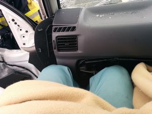 私は凹んだダッシュボードに足を挟まれ身動きが取れなくなり、駆けつけた救急隊に助けられました。